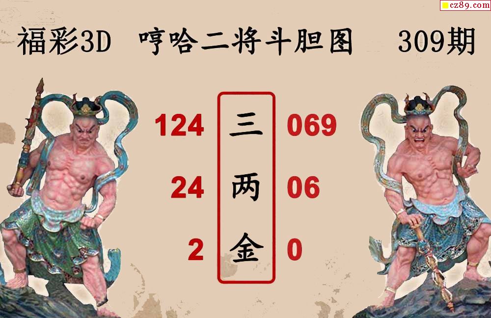福彩3D2025309期 白鱼舟3D图谜哼哈二将斗胆图